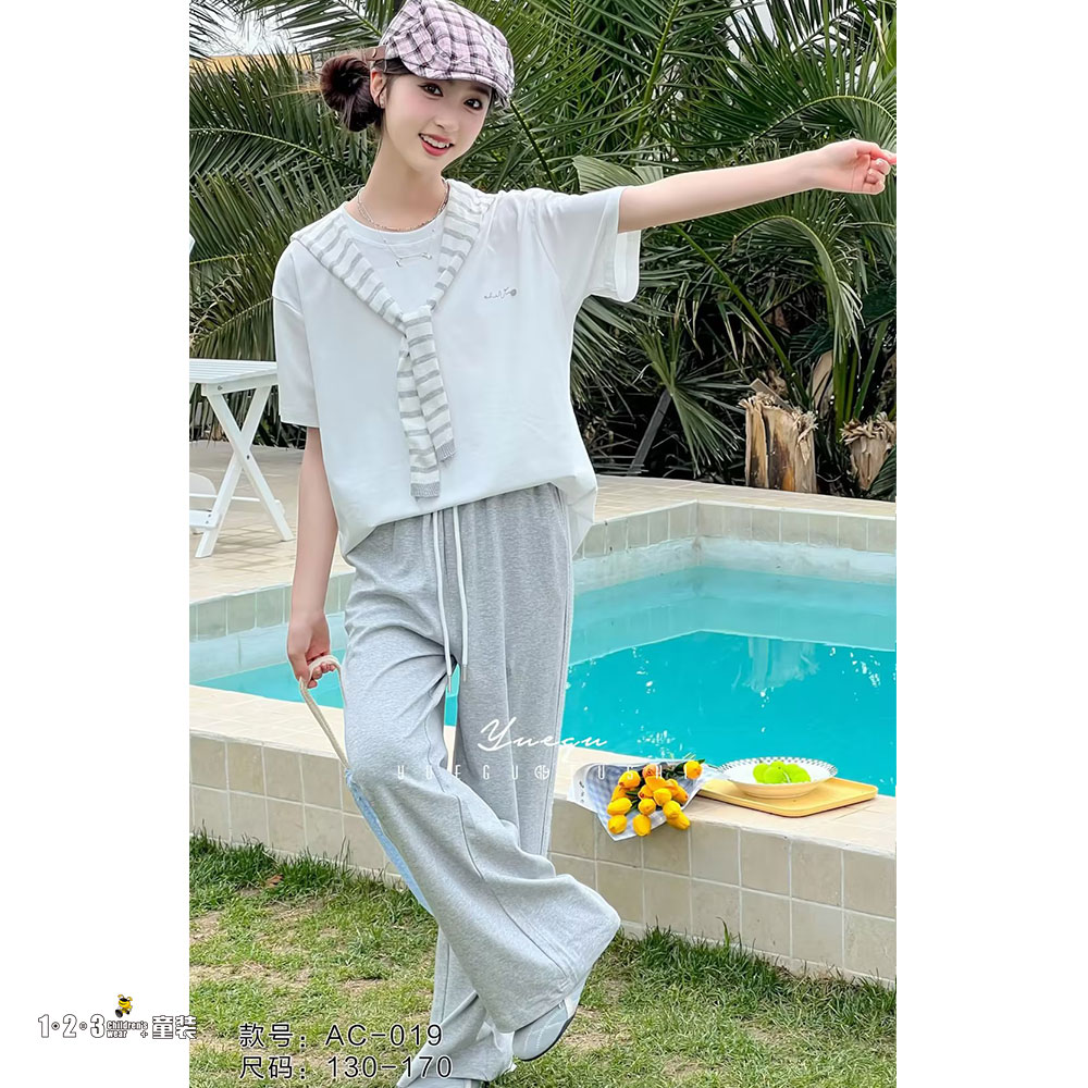 灰 夏款 女大童023 YGDD时尚短袖套装123童装连锁