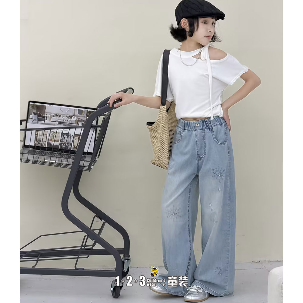 《甜美》【特价】蓝 夏款 27-31女大童XKB6833 BBDD时尚牛仔中裤1+2=3童装连锁
