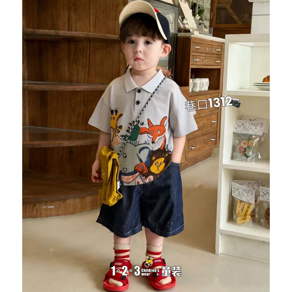 【特价】烟灰 夏款 男小童1312 FXDD时尚短T123童装连锁
