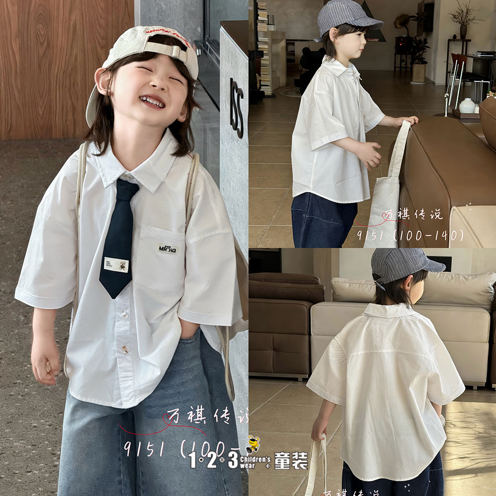 白 夏款 男中童9151 WQDD时尚短袖衬衫123童装连锁