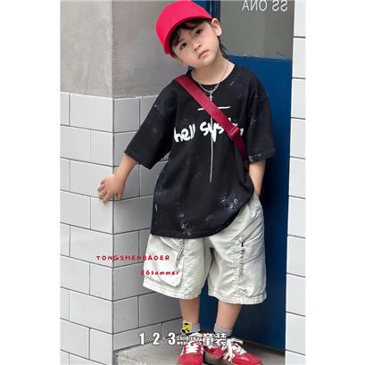 >>黑 夏款 男中童2605 TSDD时尚短袖套装123童装连锁