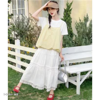 >>黄 夏款 女大童026 YGDD时尚短袖套装123童装连锁
