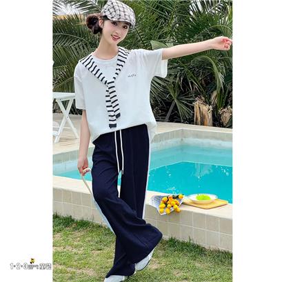 藏青 夏款 女大童020 YGDD时尚短袖套装123童装连锁